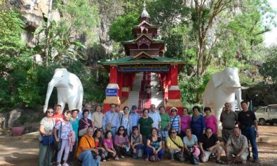 经过提前数月准备,南加州缅华团一行31人,于11-13-2017离开洛杉矶,搭乘中国南航双层巨霸班机,途经广州,前往缅甸仰光,并转乘客车,北上古都曼德勒,参加第九届世界缅华同侨联谊大会。而缅华会长黄国胜等20人,则已分批提前飞赴缅甸。每次组团参加同侨会,总是先去别处旅游,之后去开会,或是先去开会,之后去旅游。而我们此次选择,先做短日旅游,参加开会后,再做长日旅游,行程非常紧凑。我们的行程可谓一帆风顺,天气晴朗,当地时间15日早上,班机准时到达广州,中午准时到达仰光,可谓分秒不差。 (图一)旅游团吉英邦首府帕昂市清晨畄影 我们团有缅华会代表,南友会代表,华友会代表,也有少数外州来的代表。大家不分彼此,抱成一团,统一由南友会长林碧华带领,她平时讲究节约,几个月来,花费许多时间和精力,细心选择价廉高质的航班,客车,各地旅店,不间断地保持联系,力求万无一失,说心里话,我们佩服之余都有些过意不去。 我们大家顺利通过机场移民关和海关,我把两个托运行李交给前来迎接的小弟一家,向弟弟拿了10万缅币,姪女给我手机换了当地卡。和大家一起上了早已到机场等候的旅游大巴。林碧华手握一大把其弟给她准备的缅币,分给所有需要的团友。虽经18个小时长途飞行,21小时旅途,包括86岁高龄丘国壤团友,大家精神饱满,心情愉快。 (图二) 转乘小货车前往神密溶洞 我们的女导游约30岁云南华侨,家居缅北,能讲流利的中、缅语,她请了个同龄女孩,搬运行李小男孩以及她的表弟,连同司机共计5人为我们服务。 车轮一动,团友们手指仰光郊区,问东问西,导游尽心回答,直至上了仰光一曼德勒高速公路,导游开始给我们介绍此趟两日一夜吉英邦行程。 已到午饭时间,大巴停靠路边休息站,只见一整排歺飲店,导游领我们进一家缅歺店,大家随意4人一桌,6人一围,热情的男女小服务员笑脸相迎,心中可能觉得我们满口缅甸话,又不像本地人,不知来自何方。大家拿定桌位,纷纷去点菜,只有我们夫妇,向小女服务员开了一盘缅币3000元炒饭。一盘满滿的五彩热炒饭很快送上桌来,其他团友们前面也摆滿了鱼肉饭菜,凡是吃白饭的,均配有素菜并盘,鱼醤和一碗热汤,约10000元,两人吃不到美金10元,算很便宜。大家首歺吃得很香。虽是深秋时节,天气仍很炎热,除了车上分发的饮水,大家都多买了300元缅币瓶装水。 (图三) 神密溶洞入口前合影 大巴急行赶路,穿越宽阔的稻田和远处的绿树,因已过了秋收季节,看不到稻谷,只见割剩的稻秆,一路见到肥壯的水牛在田里觅食,在缅甸不但人会用黄树皮磨粉参水涂脸擦手,保护皮肤,水牛也会滾泥塘,披灰衣以防太阳暴晒。 不知何时,车厢里响起嘹亮的歌声,林碧华,朱徐佳,张少应,先后唱起好听的歌曲,掌声不断,笑声不停,此时导游的表弟也从后座走到前面,开怀演唱香港名歌,以示助兴,宾主尽欢,增加不少旅途快乐。...