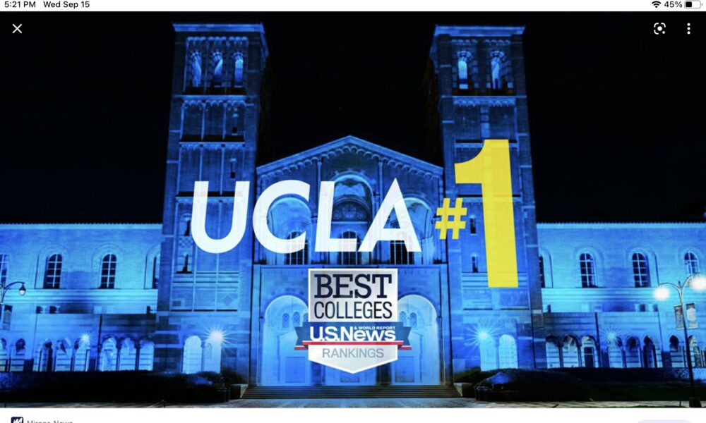 《美國新聞與世界報導》(U.S. News & World Report)於9月13日公佈最新大學排名,洛杉磯加大(UCLA)連續第五年榮登全美第一公立大學寶座。